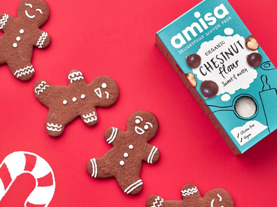 Make gluten-free gingerbread people even more festive by using chestnut flour! This recipe calls for Amisa Gluten Free Chestnut Flour, melted coconut oil, maple syrup, and spices like ginger and cinnamon. Top with white writing icing to decorate. Bake for 8-10 minutes and enjoy!
