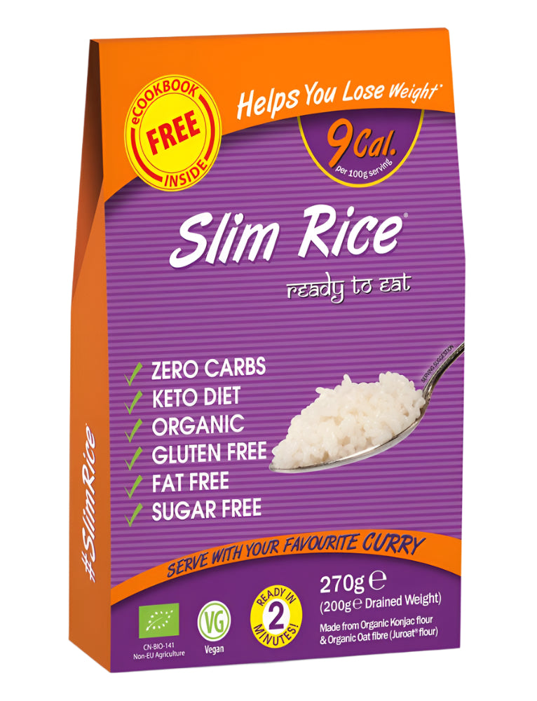 Organic Slim Rice is a konjac plant-based alternative to regular rice that is scientificailly providen for weight loss. It is also zero in Carbohydrate, 9 calories per 100g, Keto friendly, Vegan, Gluten-Free, Fat-Free and Sugar-Free.