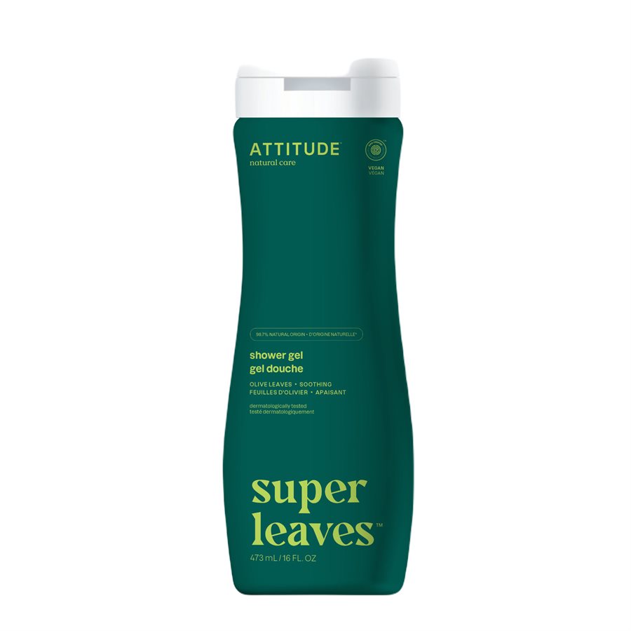 ATTITUDE vegan soothing shower gel - olive leaves gently cleanses your skin. It is formulated with 98.7% naturally sourced ingredients*, including vitamin-rich watercress and Indian cress with purifying properties. Its EWG VERIFIED and dermatologically tested formula is enriched with olive leaves extract, to soothe dry skin and keep it healthy. You'll love its velvety texture and its gentle pear fragrance with invigorating nectarine and ginger notes.* According to ISO 16128.