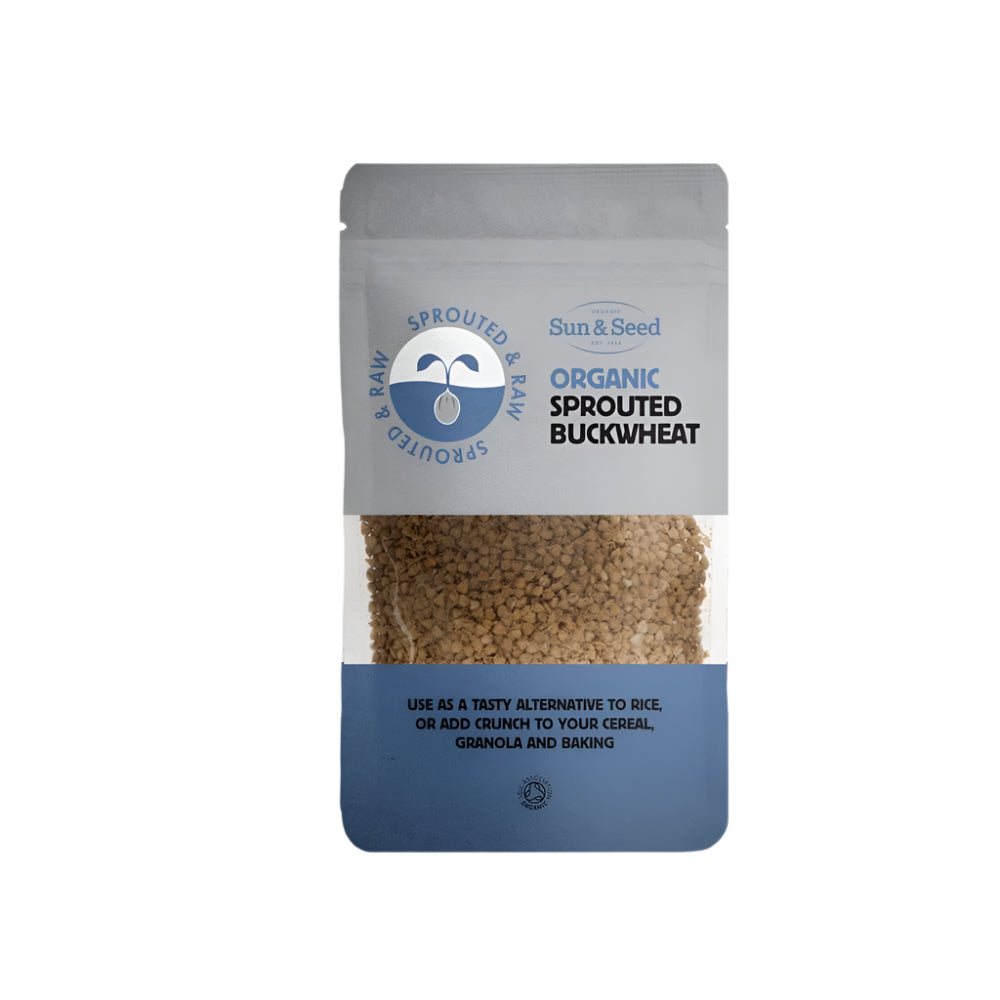Activated with water and germinated into shoots then dehydrated below 40 to preserve the raw nutritional value. Soaking and rinsing the seeds with pure water removes the enzyme inhibitors and the seed begins to germinate. All of the resting nutrition in the seed begins to break down into its simplest components: proteins break down into separate amino acids, complex starches and fats break down into simpler carbohydrates. Meanwhile, the plant starts to multiply in its nutrient content, growing into a sprout, getting ready to become a tree or full sized plant. This results in a sprouted food packed with vitamins, minerals and proteins. Our Sprouted Raw Organic Buckwheat makes a great addition to cereal, smoothies, cakes and salads, bringing a nice crunch with a delicate taste. Our top tip: add to porridge for some extra crunchiness. Ingredients: 100%