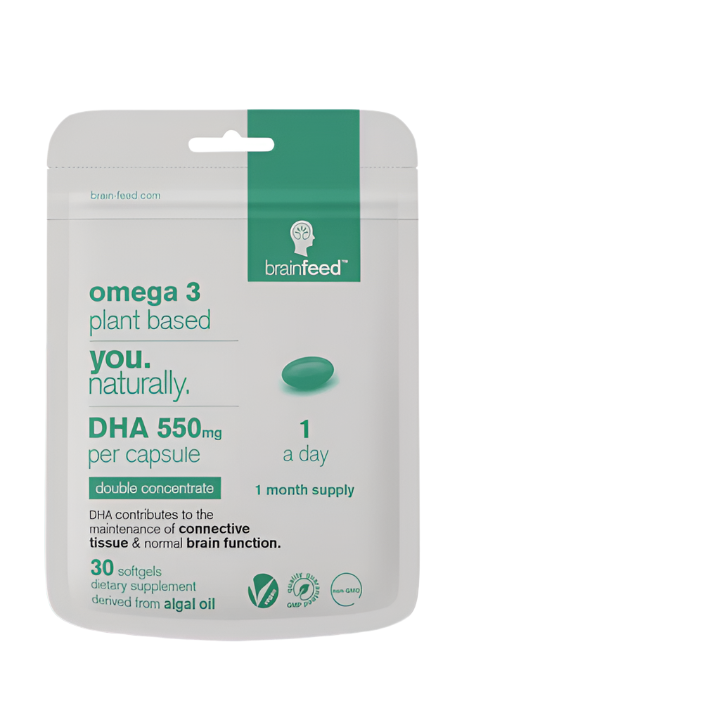 Brain Feed | Omega3 Plant-based DHA 500mg 1-a-day | EU Certified Brain Health | 60softgels