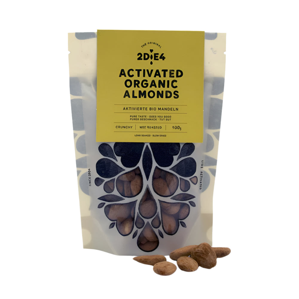 2DiE4 Activated Organic Almonds Activated, not roasted. Long soaked, slow dried at temperatures below 65C Pure and all natural The tastiest, crunchiest, and most wholesome nuts. A delicacy for foodies, vegans, athletes and any conscious people Harvested in Andalusia - Spain Handcrafted on the foothills of the Bavarian Alps The original since 2004
