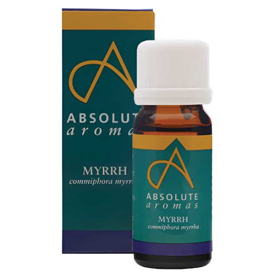 Myrrh, like Frankincense, is distilled from a resin. It is extremely viscous, and therefore more difficult to use. Absolute Aromas has used a larger dropper for this oil, but with time it may solidify. The only solution is to warm the oil gently in the hands before use, and to be patient! lt;p gt; Myrrh has acquired a reputation as a healer over the centuries and as such can be beneficial when used in inhalations to help ease winter ills. Place 1 drop each of Myrrh, Benzoin and Lavender in a bowl of boiling water. Drape a towel across your head and shoulders and inhale the vapours for a few minutes. lt;p gt; Try blending 1 drop of Myrrh, 2 drops of Geranium and 1 drop of Peppermint in 10ml of Coconut oil to use as a massage oil on neglected feet. lt;p gt; Do not use Myrrh during pregnancy.