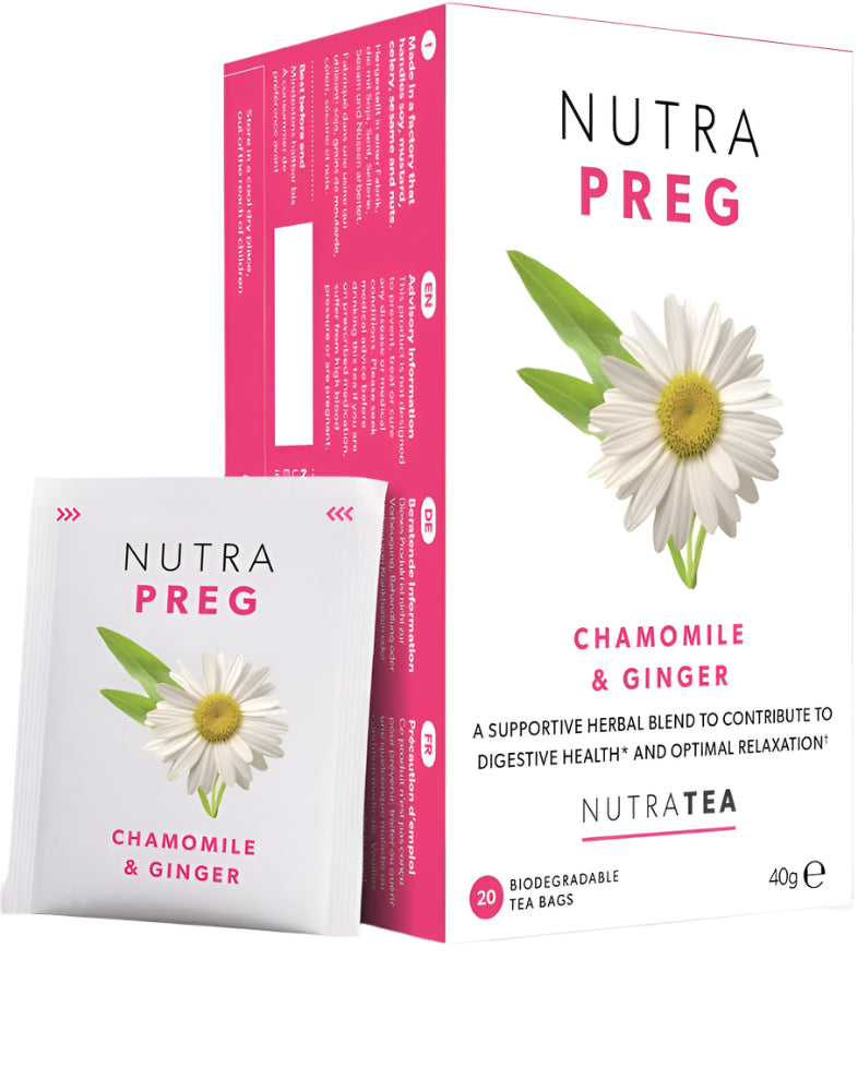 Supporting the body's vitality, NutraPreg contains Ginger to help support digestion and the immune system, whilst Chamomile helps support mental wellbeing and together with oat straw supports relaxation. A nurturing herbal blend to support milk production and wellbeing after childbirth.