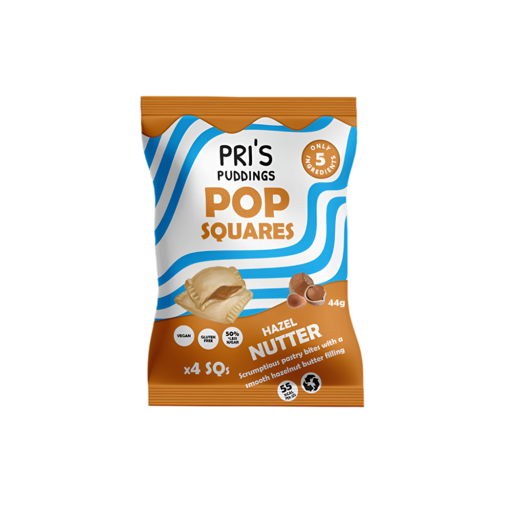 At Pri's Puddings, we are on a mission to disrupt confectionery with the 1st HFSS compliant plant-based treats which are better for you, better for the animals and better for the planet. Pri's Puddings' Hazelnutter Pop Squares are scrumptious pastry bites with a smooth hazelnut butter filling. Made of ONLY 5 INGREDIENTS and are vegan, gluten free and contain 60% less sugar