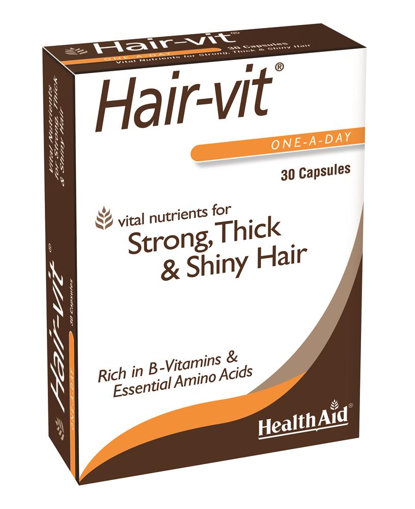 Hair-vit capsules are specially formulated to provide vital nutrients required for healthy looking hair. They are rich in B Vitamins and Essential Amino Acids to help nurture the texture, thickness and colour of your hair. Optimum care for strong, healthy hair. Suitable for men and women.