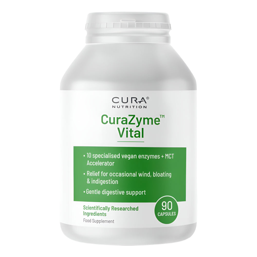10 Specialised Vegan Enzymes Gentle support to break down, proteins, carbs, fats and fibre Includes CuraBlend Proteases, Amylases and Lipases to activate across all pH levels in the digestive system MCT Accelerator speeds up enzyme activity