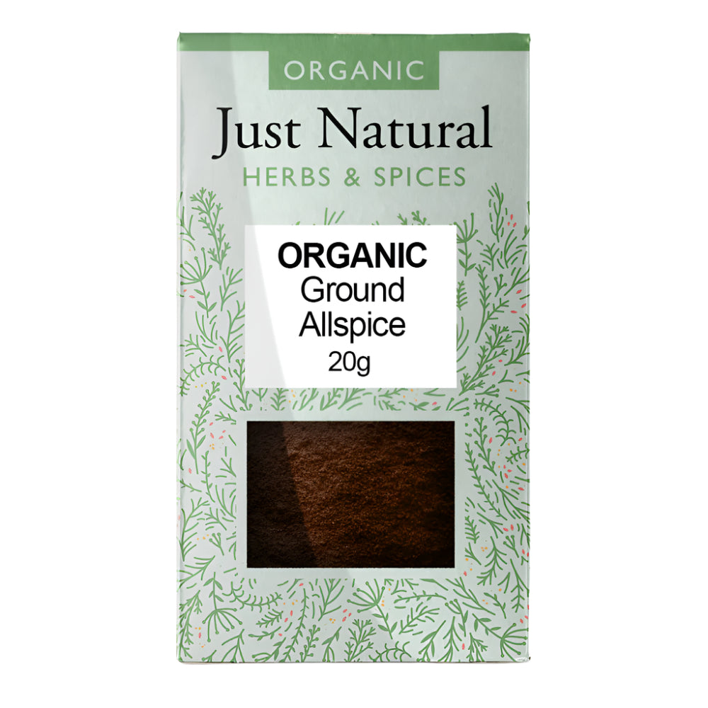 Just Natural Organic Ground Allspice is made with pimento berries sourced from only the best organic growers around the globe. Allspice has a flavour likened to cinnamon, ginger, nutmeg and cloves, hence the name Allspice. As you would expect, Allspice is a versatile ingredient in many fragrant dishes, sweet and savoury. And it's packed in our 100% plastic free home compostable sachet inside a recyclable cardboard box. For nutritional information and ingredients, click Further Information.