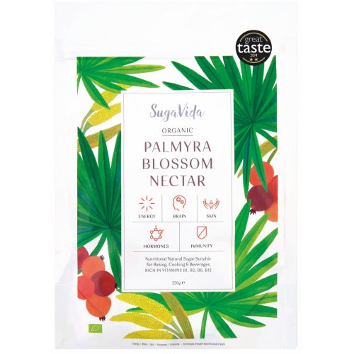 Organic Palmyra Blossom Nectar is the most nutritious natural sweetener on the planet. Harvested from the blossom of the rare Palmyra tree in South- East India, it has a low GI of 35, is rich in Vitamins B1, B2, B6 and bioavailable B12, has an award-winning taste and is suitable for baking, cooking and beverages.