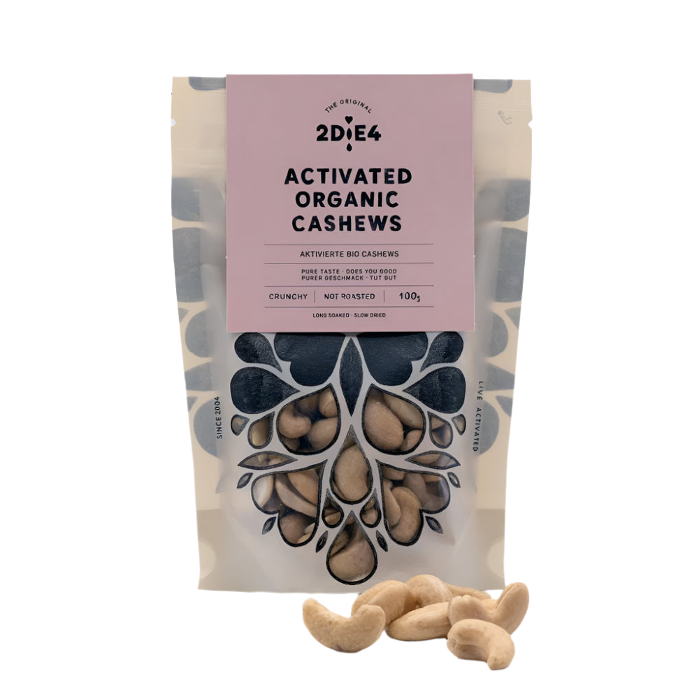2DiE4 Activated Organic Cashews Activated, not roasted! Long soaked, slow dried at temperatures below 65C Pure and all natural The tastiest, crunchiest, and most wholesome nuts! A delicacy for foodies, vegans, athletes and any conscious people Harvested in Bali Flores - Indonesia Handcrafted on the foothills of the Bavarian Alps The original since 2004
