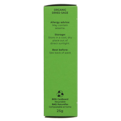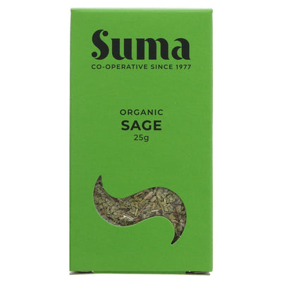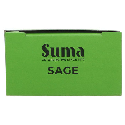 Savor the earthy flavor of organic Sage by Suma. Perfect for seasoning your favorite dishes, this vegan herb adds depth to soups, stews, and sauces.