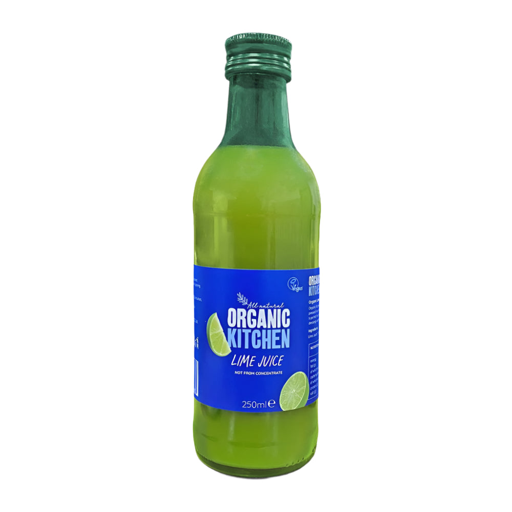 Organic Kitchen lime juice is freshly squeezed from ripe South American limes and never from concentrate. Lime juice is great for making salad dressings and sauces or try making your own margaritas. For nutritional information and ingredients, click Further Information.