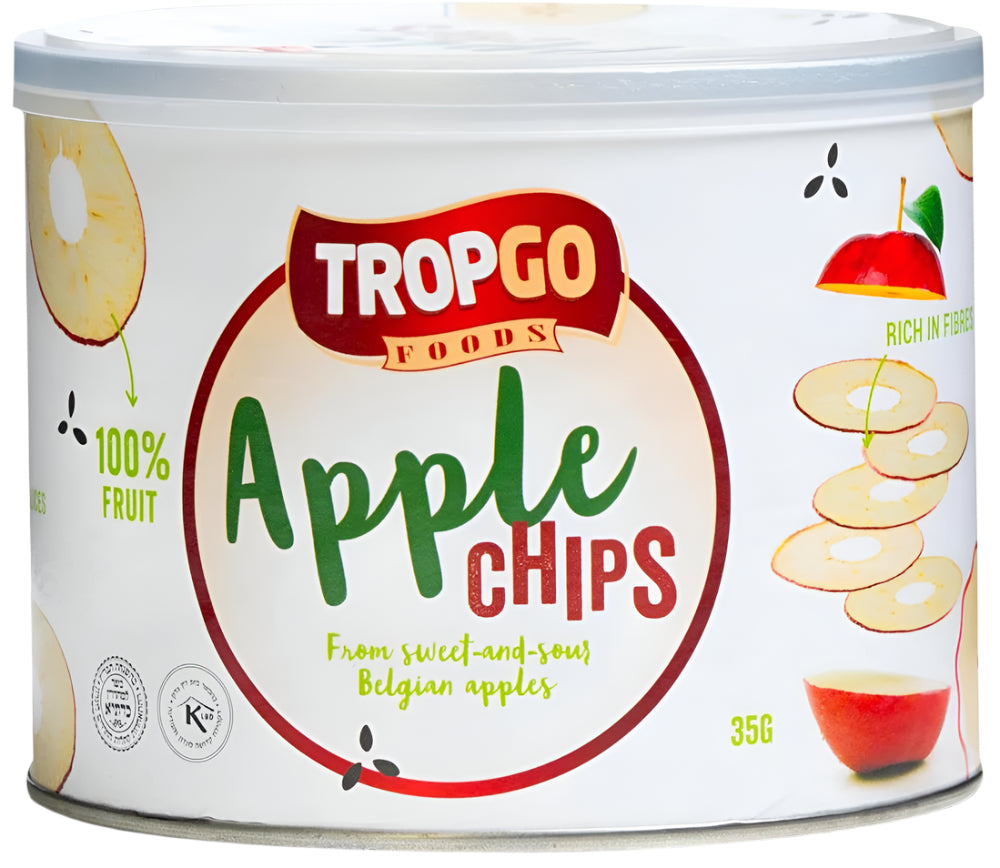 Tropgo - Belgium Apple Chips - 100% Fruit - Natural Healthy Snack - Fresh Red Apple Crisps 35gr - Recyclable Tin Fresh lock seal (1-Pack, Red)