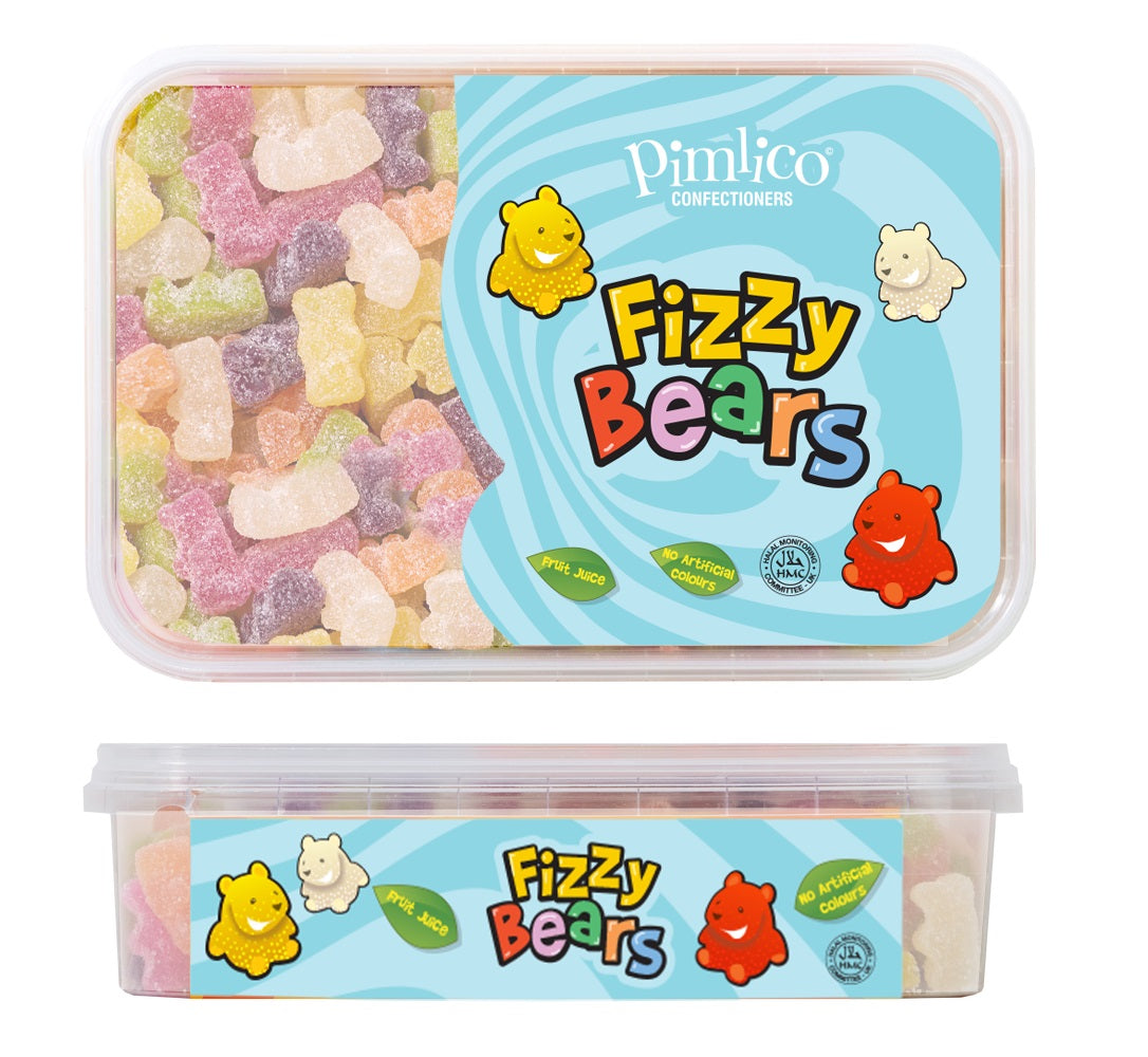 Fizzy Bears Tub 450G Our Fizzy Bear Retail Tub 450g is the perfect on-the-go treat for kids and adults alike. These tasty bear-shaped sweets are made with real fruit juice, natural colours, and zingy fizzy coating that gives them a refreshing burst of flavour. ? Halal Made with real fruit juice Made with natural colours Fizzy coating