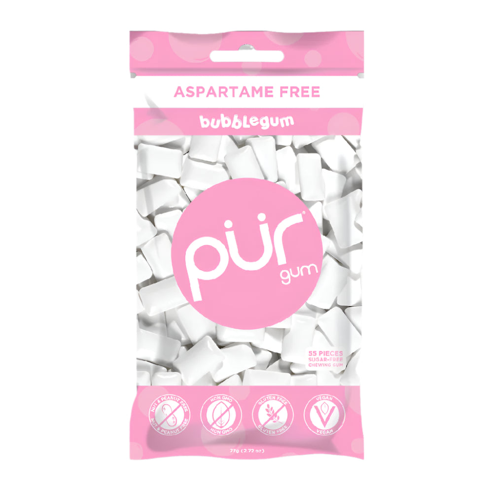 Pur Gum Bubble gum flavour) Bag. Freshen your breath naturally with the 1 selling aspartame free gum sweetened with 100% Xylitol. 55 pieces of gum in a bag