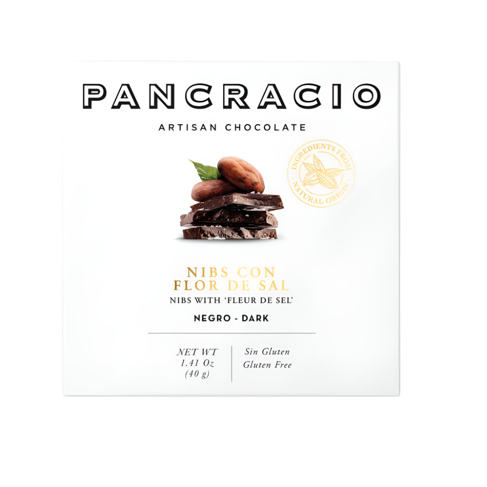Pancracio Chocolate | Cocoa Nibs and Fleur de Sel Dark Chocolate Bar 40g | 40g