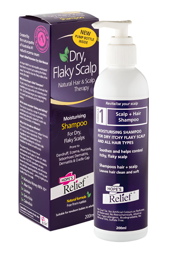Hope's Relief Shampoo is for itchy flaky scalps and those prone to eczema, psoriasis, dermatitis, seborrheic dermatitis and dandruff. Suitable for babies to adults it is gentle, unscented, pH balanced, hypoallergenic and sulphate free. Contains Hospital Grade Organic Manuka Honey NPA 10+, Gotu Kola, Aloe Vera, Organic Calendula and Licorice Root combined with the gentlest cleansers to relieve itchy, flaky scalp conditions and give your hair healthy shine and bounce.