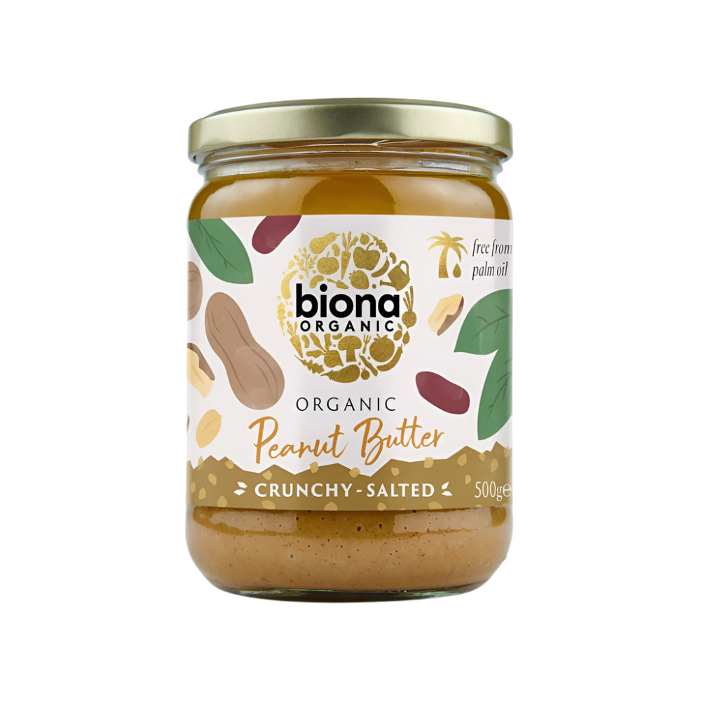 Biona Organic Crunchy Peanut Butter is milled from small batches of freshly roasted certified organic peanuts, a touch of sea salt - and that's it! No sugar, palm fat or emulsifiers, only the whole nuts which means you receive all their nutritional goodness and creamy taste. Our Crunchy Peanut Butter has a wonderful flavour and is a great source of protein. With a satisfying mix of velvety consistency and chunky pieces of peanut, it is distinctive in texture, wholesome and fulfilling. Not to mention, energy rich! Spread over fresh, hot toast; dollop onto porridge, stir into yoghurt, smoothies or add to cookie dough in baking.