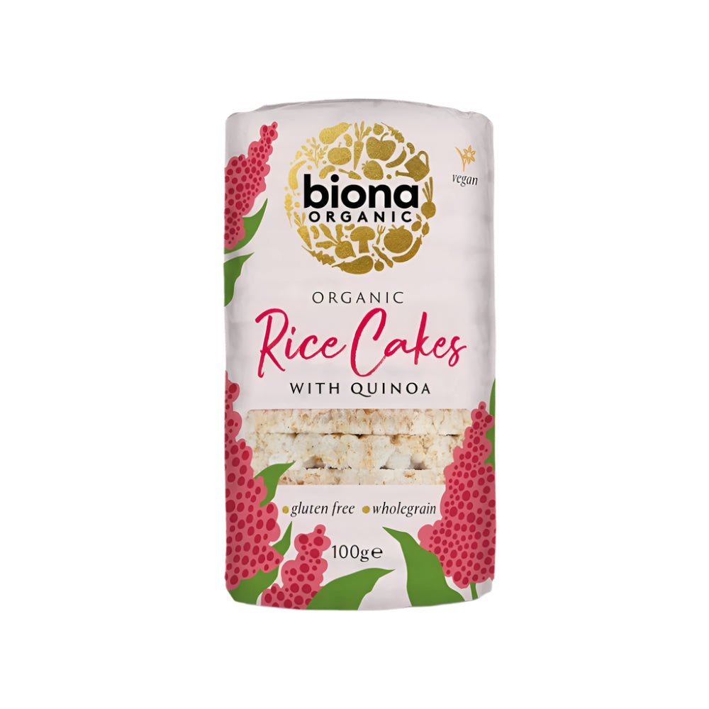 Organic rice cakes containing protein-rich organic quinoa - the perfect healthy snack.