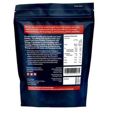 Fuel your day with our Chia Charge Chia Seeds. Packed with nutrients, these seeds are perfect for vegans, vegetarians, and those with dietary restrictions. Originating from Bolivia and Argentina, they are gluten-free, dairy-free, and free from 14 major allergens. Add them to your smoothies, yogurt, or salads for a nutritious boost.
