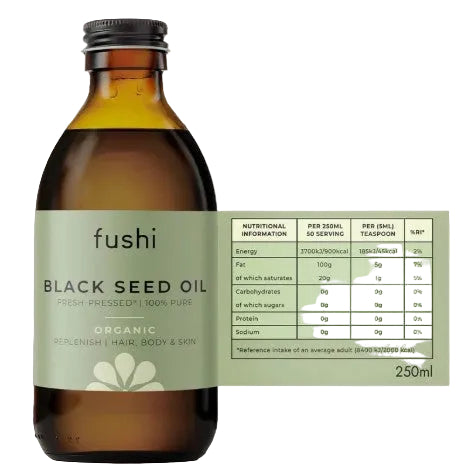 Indulge in the rich, nutty flavour of Fushi's Organic Black Seed Oil. Made in the UK, this vegan & gluten-free oil is perfect for adding a touch of earthy goodness to your favourite dishes. Dairy-free & free from 14 major allergens, it's a versatile addition to your pantry.
