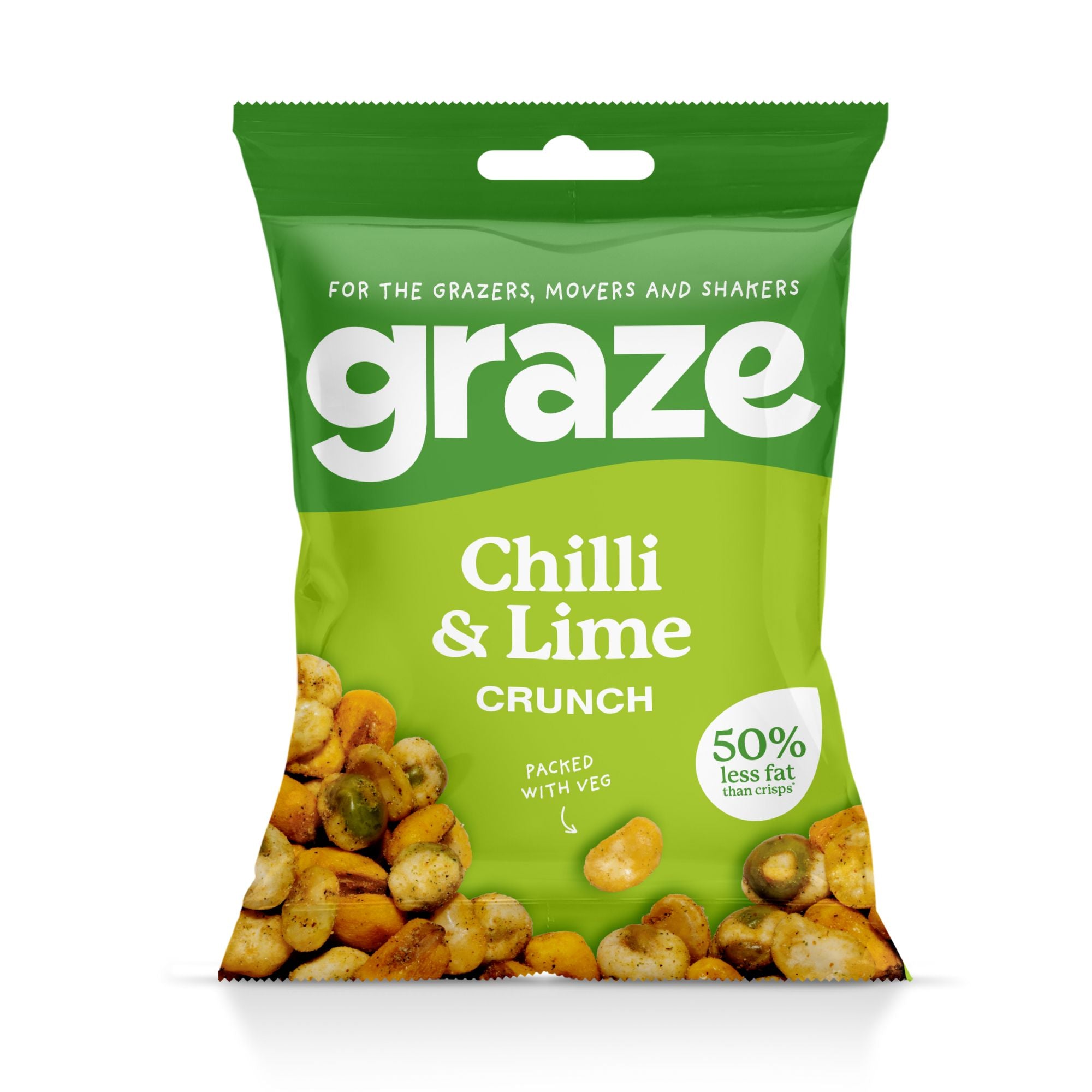 Full of zesty & spicy flavour, graze mouthwatering Chilli & Lime Crunch is packed with veg; chilli & lime flavoured broad beans, roast peas and corn.