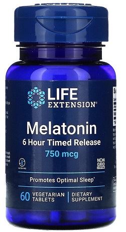 Life Extension | Melatonin 6 Hour Timed Release- 750mcg | 60 vegetarian tabs