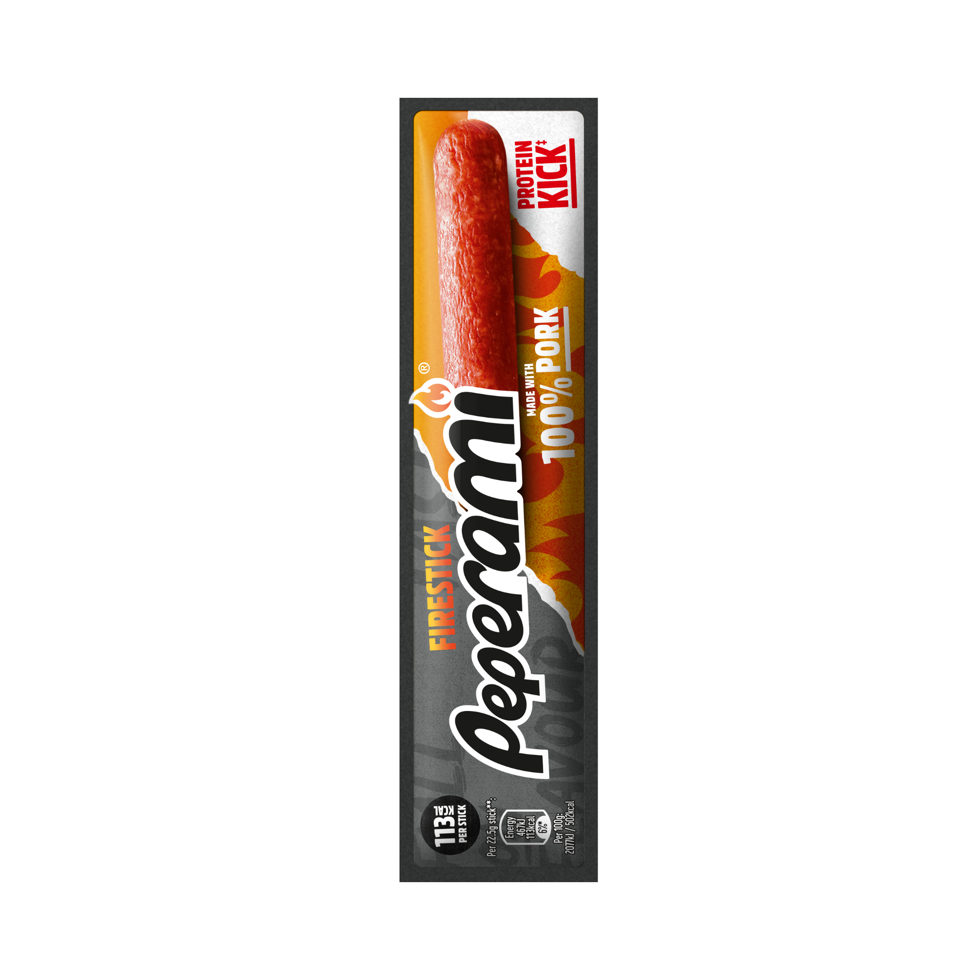 Firestick delivers an extra-hot take on the classic Peperami meat stick, with intense chilli spice and a firm, satisfying bite for heat-seeking snackers.