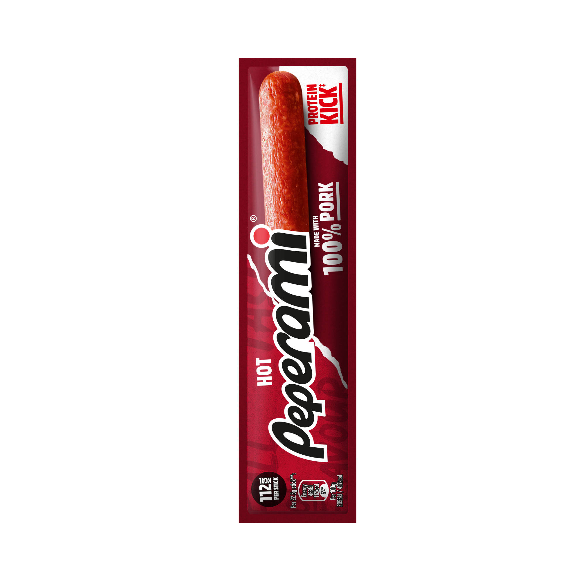 The Hot Peperami meat stick turns up the heat with extra chilli while keeping the same portable, high-protein format as the original.